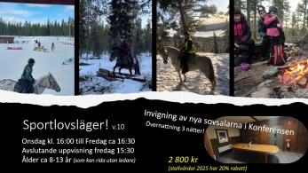 Vi har Invigning av nya Sovsalarna med ett ungdomsläger!! Ridläger 8-13 år. onsdag-fredag.